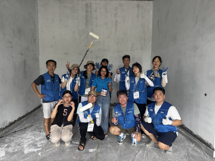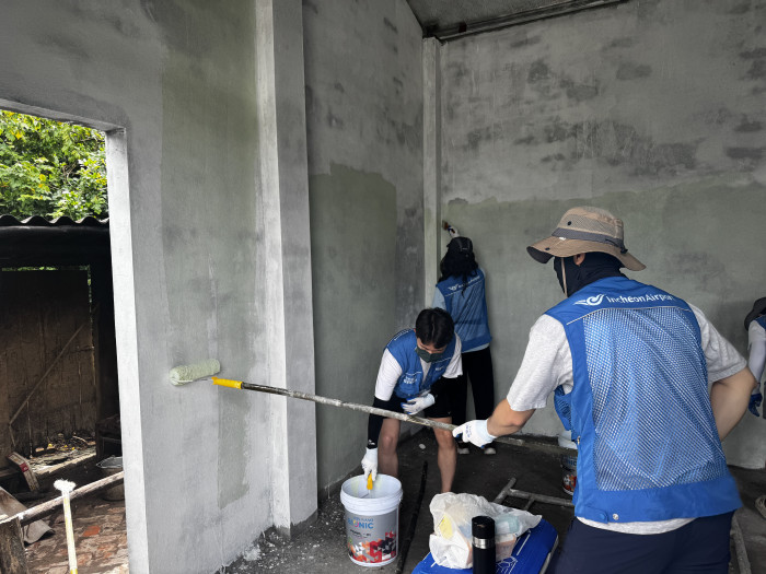 (주)공감만세와 A-PAD KOREA는 인천공항공사와 함께 지난해 태풍 ‘야기’로 피해를 입은 베트남 북부 푸토성 히엔르엉면의 4가구를 위해 새 보금자리를 짓는 주거지원사업이 진행 중인데요. 2025년 4월, 푸토성 외무청과 인민위원회와의 긴밀한 협의를 통해 4개 가구를 선정하고, 7월부터 신축 주거지 지원을 시작했습니다. 그리고 9월 8일부터 13일까지 해외봉사를 떠난 42명의 인천공항공사 글로벌 봉사단 22기는 신축된 가구를 대상으로 직접 페인트 도색에 참여하며 완성의 마지막 손길을 더했습니다.