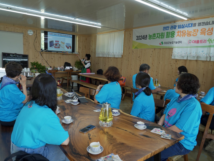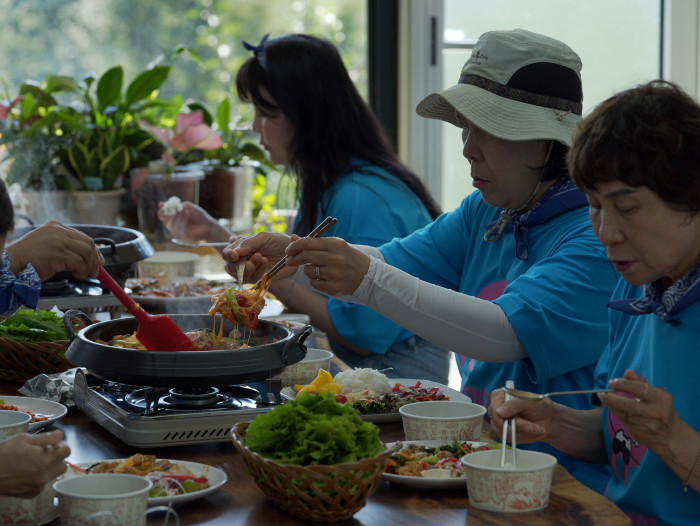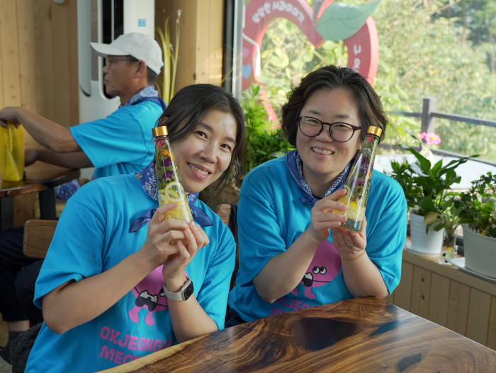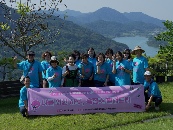 ‘나를 위한 하루, 옥정호 힐링트립’은 지친 일상 속 쉼이 필요한 사람들을 위한 원데이 치유여행입니다. ‘옥정호보실’이라는 부제처럼 아름다운 옥정호 풍경과 치유농업 프로그램을 결합해 온전한 힐링을 경험할 수 있도록 구성했는데요! 참가자들은 애플트리힐링팜에서 허브와 사과로 비니거를 만드는 푸드테라피, 직접 요리하는 치즈닭갈비 점심, 옥정호 숲길 산책, 황토길 맨발 걷기와 족욕 디톡스 체험 등을 즐겼습니다. 오감을 자극하는 체험과 자연 속 회복의 시간, 여기에 옥정호보실 한정 굿즈까지 더해지며 특별한 하루 팸투어가 완성되었습니다.