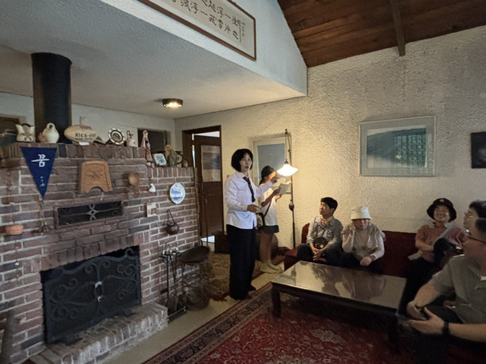 9월 13일, 첫번째로 진행한 팀은 난실리팀(김정옥, 이광숙)입니다. 조병화 문학관이라는 장소를 거점으로 팀원들의 장점을 살려 시화 그리기, 숲 체험 등의 프로그램을 기획하였습니다. 조병화 문학관은 편운 조병화의 유품과 창작저작물들이 그대로 있는 문학기념관이라 분위기가 남달랐습니다. 함께 동행한 전문가분을 비롯하여 투어에 참가한 참여자들도 빈티지한 침대, 손때 묻은 책들, 고풍스러운 벽난로 등 편운 조병화의 삶이 그대로 녹아있는 공간이 주는 매력에 매료되었습니다. 전문가분의 말을 빌리면, 공간 해설하는 김정옥 해설사님의 팬심이 담겨있는 해설이, 몰입감을 주어 좋았다고 합니다!