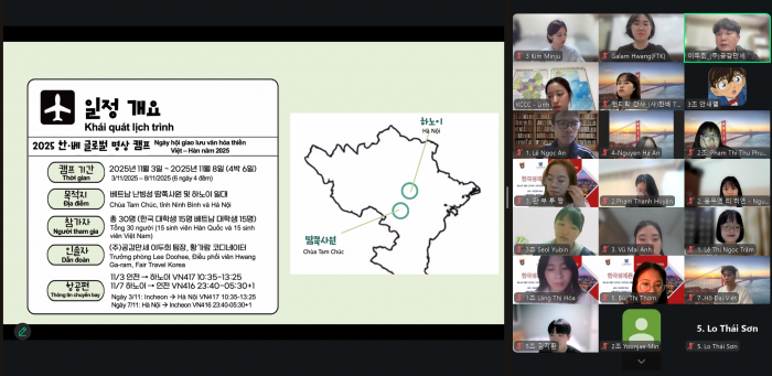지난 10월 23일, 한국과 베트남의 대학생들이 온라인으로 한자리에 모여 ‘2025 한·베 글로벌 명상캠프’ 오리엔테이션(이하 OT)을 진행했습니다.