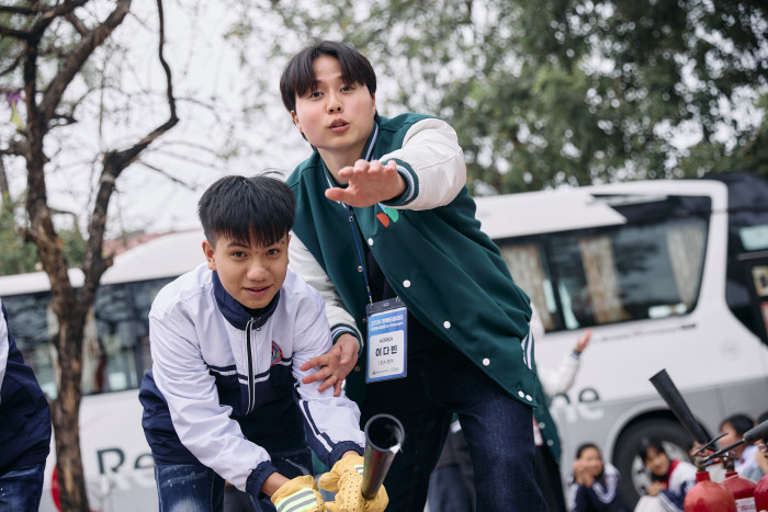 2일차, 봉사단은 베트남 푸토성에 위치한 까오사 중학교(THCS Cao Xá)를 찾았습니다. 학생과 교직원, 학부모들이 함께 봉사단을 맞이하며 연합봉사활동의 시작을 환영했습니다. 이날 까오사 중학교와 자껌중학교(THCS Gia Cẩm)를 대상으로 소방 및 의료실 물품 기증도 함께 진행됐습니다. 이어서 이번 연합봉사의 하이라이트로 한베 드림리더 장학생들이 직접 준비한 교육 활동이 진행되었습니다!