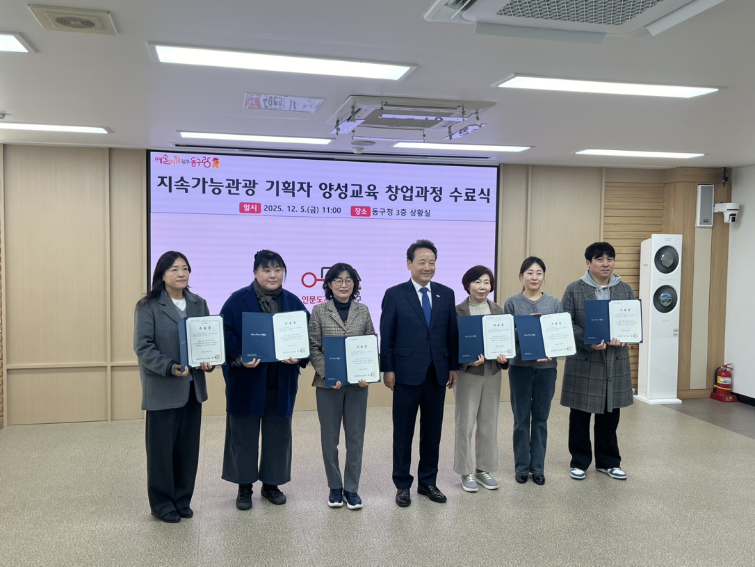 약 8주간 진행된 광주 동구 지속가능관광 기획자(창업) 양성과정이 드디어 막을 내렸습니다! (주)치른시빌, 저스트월드, 하이고래 협동조합, 따수와 협동조합까지 총 4개 팀이 팀별 맞춤 컨설팅을 거쳐 직접 기획한 로컬여행 및 체험 프로그램을 시범사업으로 실행한 후, 무사히 수료식을 마쳤죠!