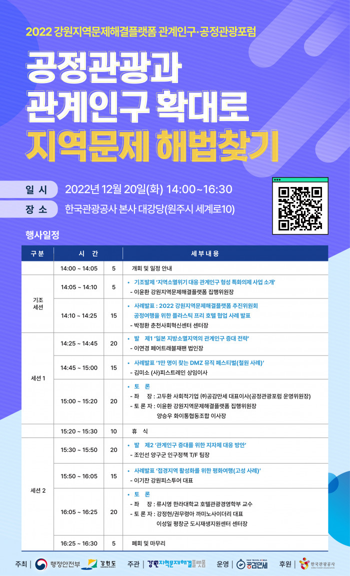 2022 강원지역문제해결플랫폼 관계인구, 공정관광포럼(12/20)